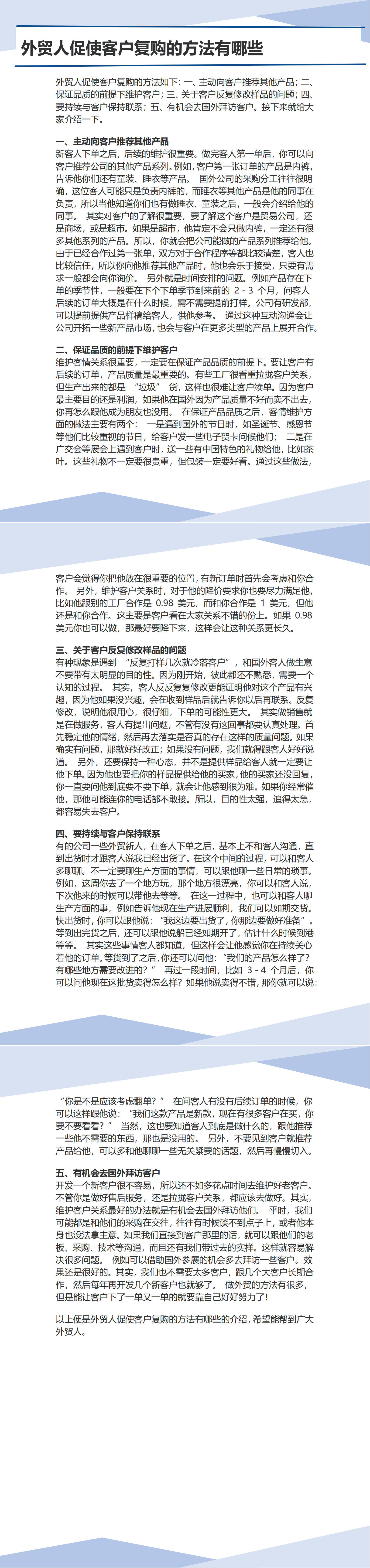 外贸人促使客户复购的方法有哪些
