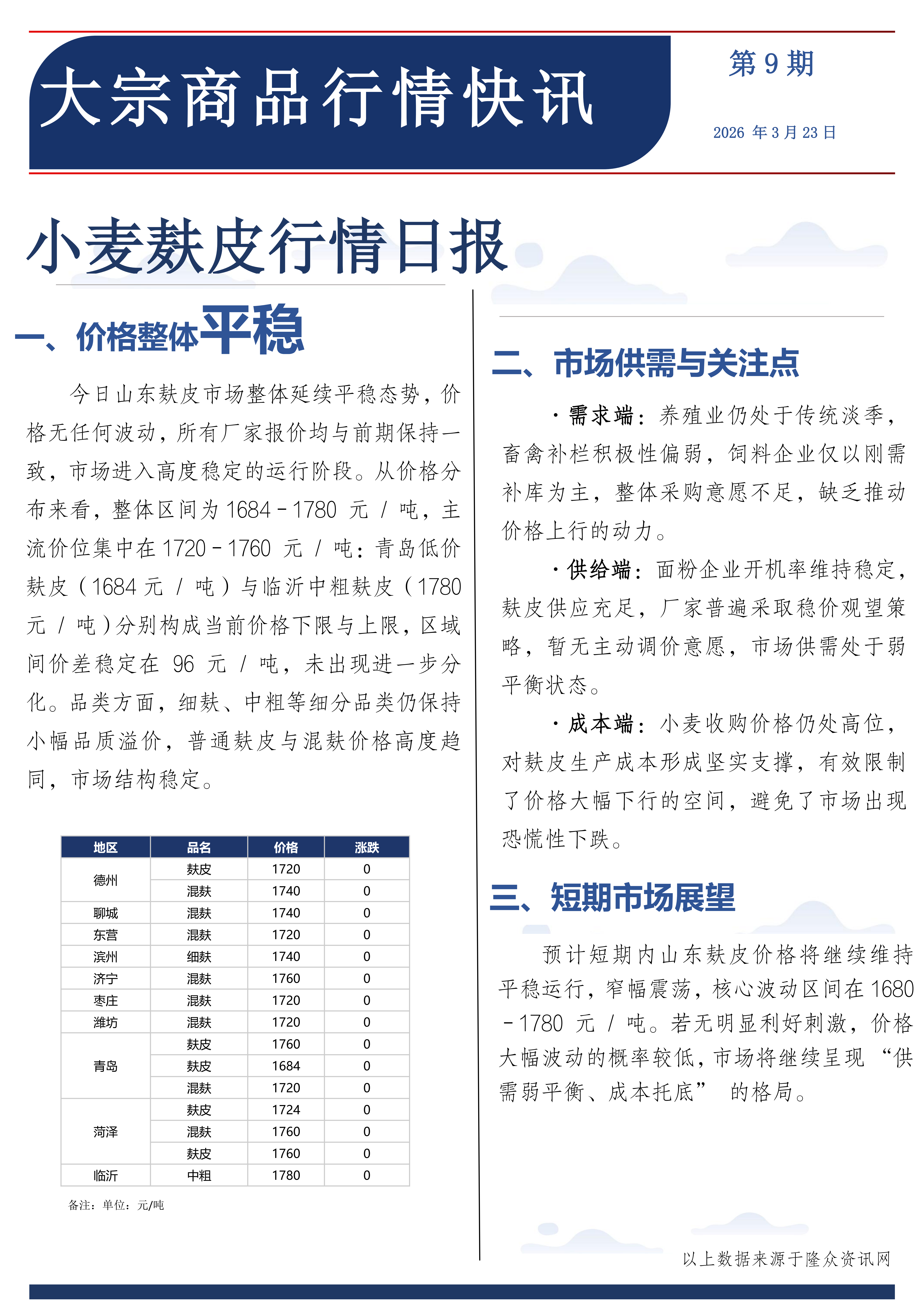 小麦麸皮行情日报2026.3.23