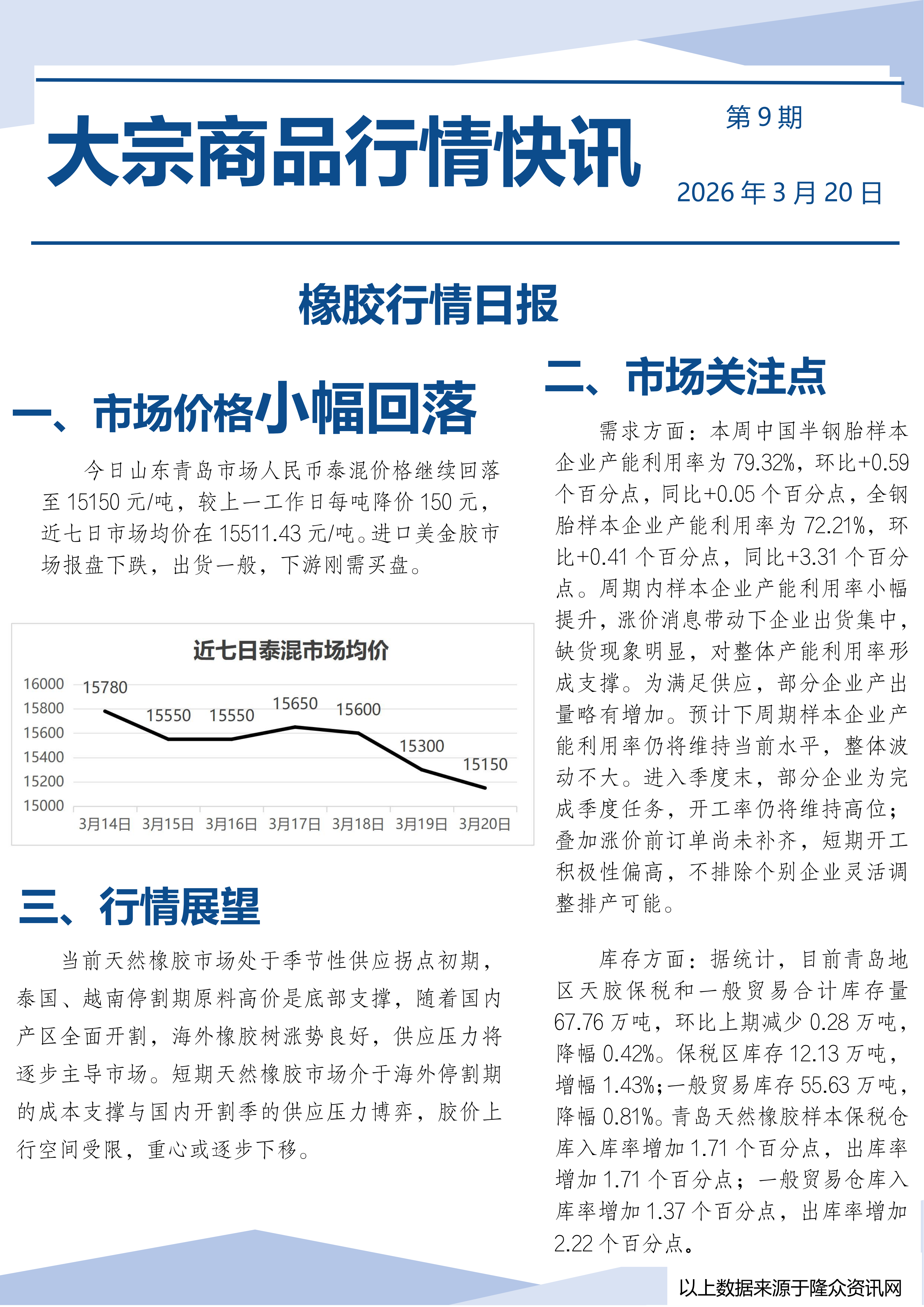 橡胶行情日报2026.3.20