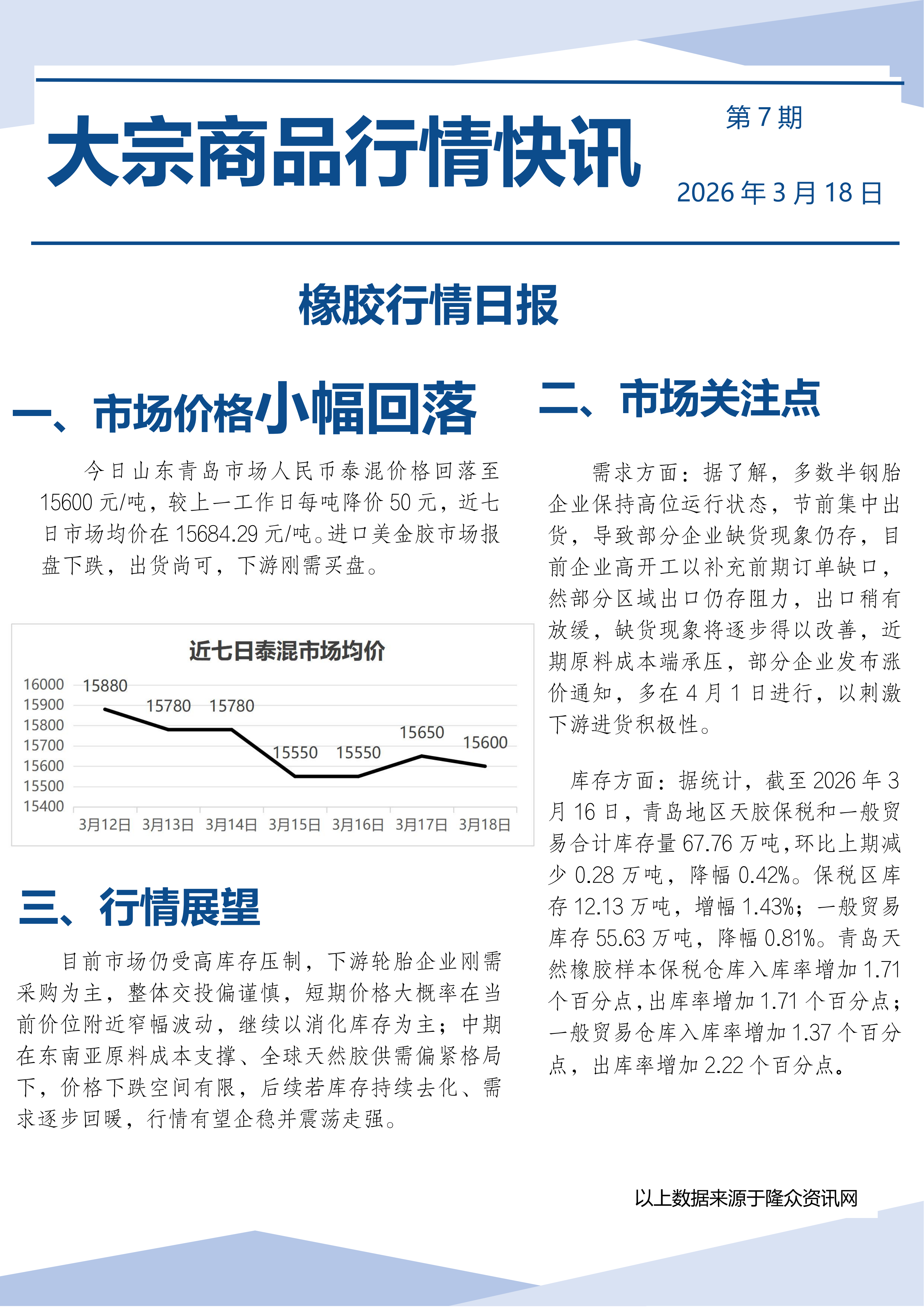 橡胶行情日报2026.3.18