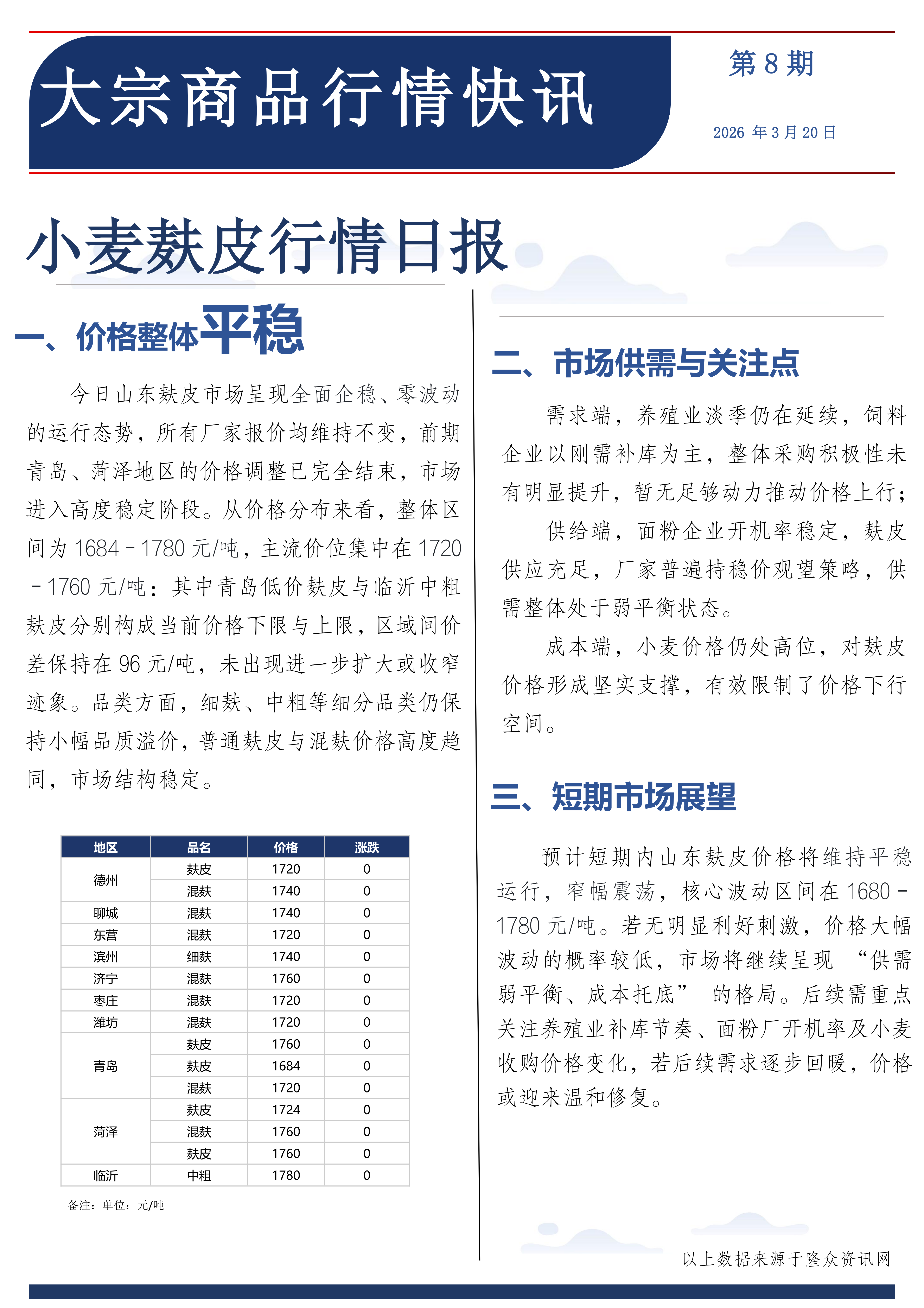 小麦麸皮行情日报2026.3.20