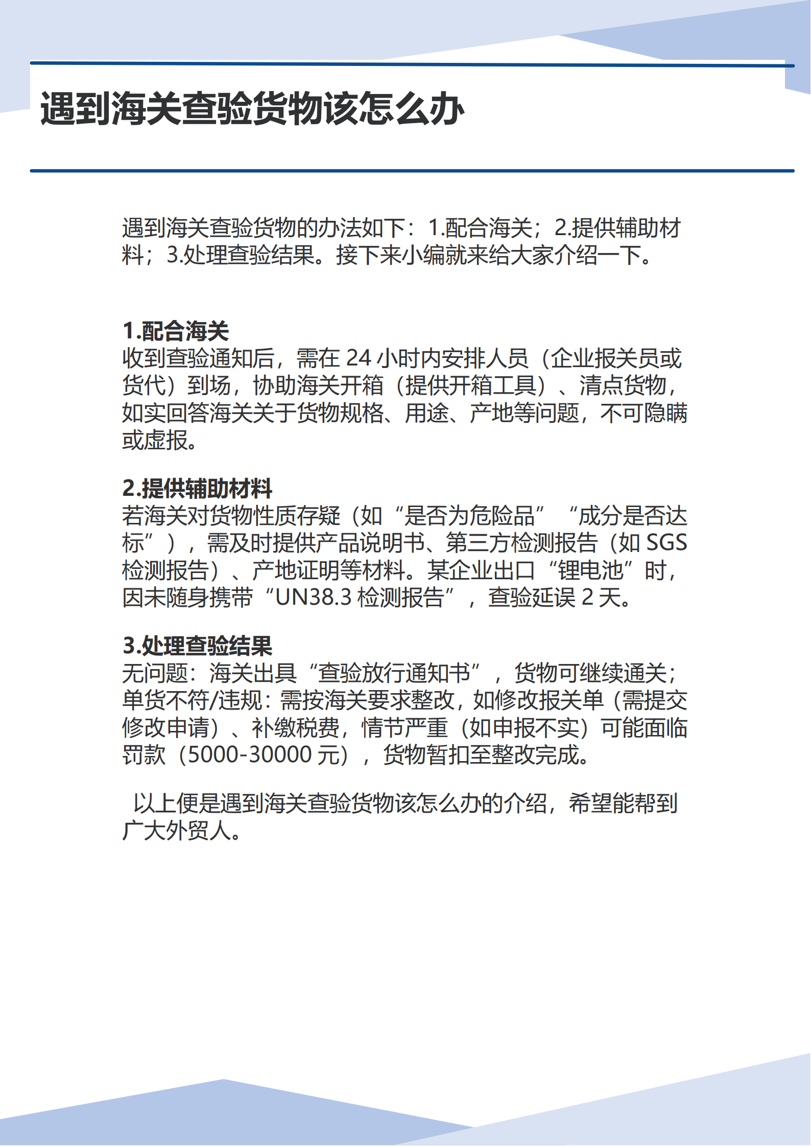 遇到海关查验货物该怎么办